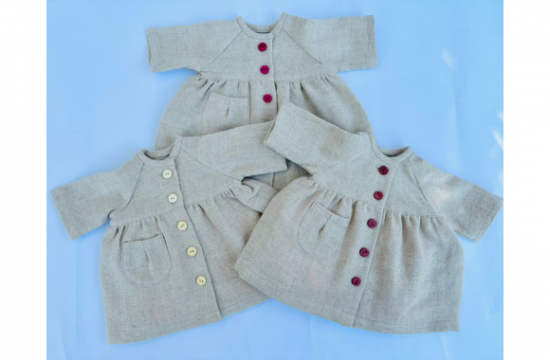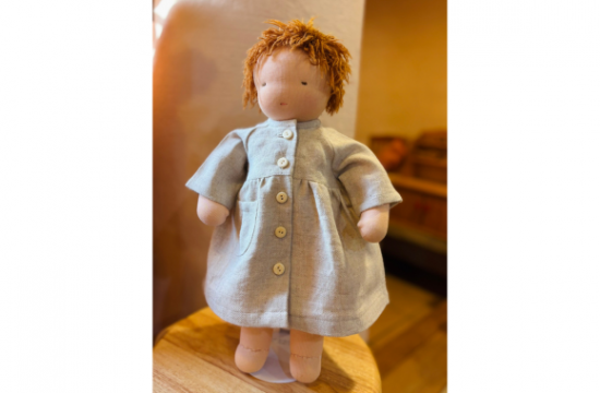 ウォルドルフ人形C体用の既製服でも人気のデザイン「ミラベルの服」でリネンウール生地を数量限定で特別販売いたします。